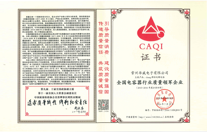 公司獲得“常州市市長質量獎”、“區(qū)長質量獎”、“全國電容器行業(yè)質量領軍企業(yè)”等榮譽稱號。